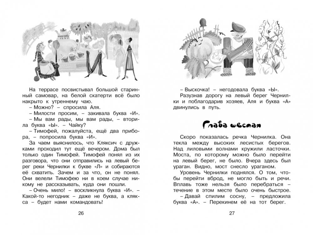 В книгу вошли повести «Аля, Кляксич и буква “А”» и «Аля, Кляксич и Вреднюга». Читатели вместе с главными героями повестей – девочкой Алей и её другом Антоном – отправятся в волшебную страну, в которой оживают буквы. Ребят ждёт много захватывающих приключений и необыкновенных встреч, а самое главное – они поймут, что учиться можно весело, увлекательно и совсем нескучно.