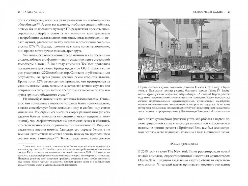 «Что я имею в виду, говоря о «сенсорном хакинге»? Освоить сенсорный хакинг — значит понимать, использовать и стимулировать чувства так, чтобы улучшить социальное, когнитивное и эмоциональное состояние человека. Если мы осознаем уникальные возможности каждого из чувств, если понимаем, как они взаимодействуют, что определяет их направление и наше поведение, то можем задействовать сенсорный опыт наиболее эффективно и таким образом повысить качество жизни тех, кто нам небезразличен, начиная с самих себя. Ваши цели могут быть разными: почувствовать себя спокойнее или энергичнее, сделать свою работу более продуктивной или менее напряженной, лучше высыпаться, лучше выглядеть, получать максимум пользы от тренировок… В любом случае наука о чувствах готова вам помочь» (Чарльз Спенс)