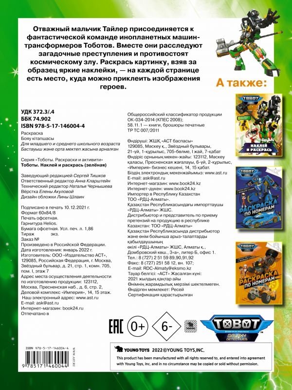 Тоботы. Наклей и раскрась (зеленая)