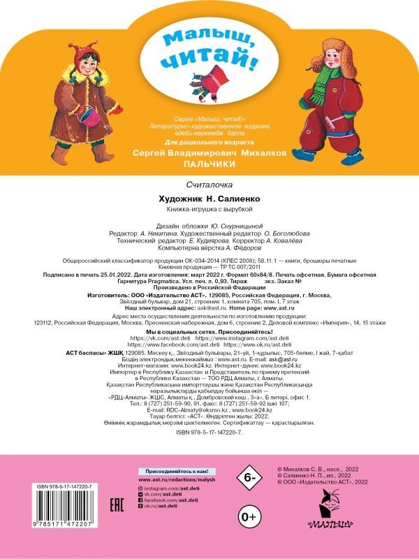 "Пальчики" С. Михалкова – это стихотворение-считалочка, стихотворение-игра. Маленькому читателю будет интересно узнать, какие имена дал поэт-классик детским пальчикам. Весёлые строки легко запоминаются, а значит "Пальчики" помогут развить память ребенка и его речевые навыки, а также позволят посмотреть на привычные вещи с другой стороны.