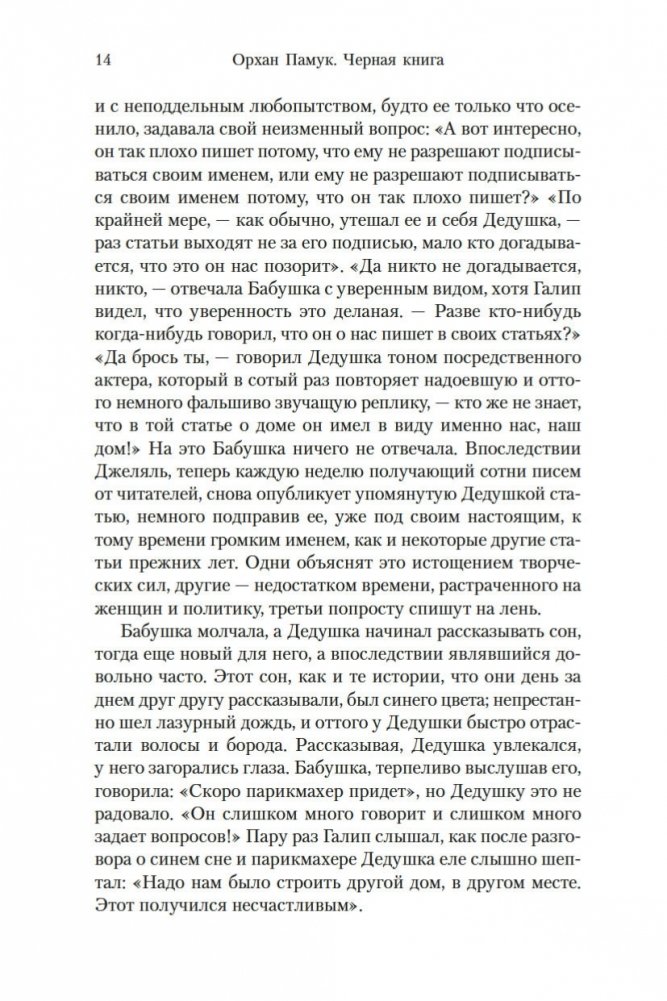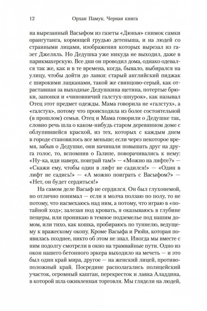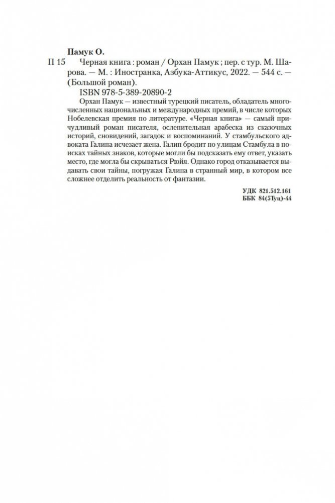 Орхан Памук – известный турецкий писатель, обладатель многочисленных национальных и международных премий, в числе которых Нобелевская премия по литературе. «Черная книга» — самый причудливый роман писателя, ослепительная арабеска из сказочных историй, сновидений, загадок и воспоминаний. У стамбульского адвоката Галипа исчезает жена. Галип бродит по улицам Стамбула в поисках тайных знаков, которые могли бы подсказать ему ответ, указать место, где могла бы скрываться Рюйя. Однако город отказывается выдавать свои тайны, погружая Галипа в странный мир, в котором все сложнее отделить реальность от фантазии.