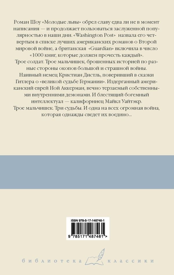 Роман Шоу «Молодые львы» обрел славу едва ли не в момент написания — и продолжает пользоваться заслуженной популярностью в наши дни. «Washington Post» назвал его четвертым в списке лучших американских романов о Второй мировой войне, а британская «Guardian» включила в число «1000 книг, которые должен прочесть каждый».