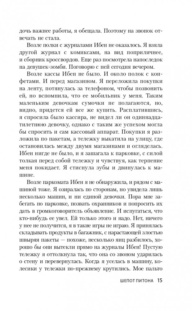 Это мой рассказ. Моя история. Она закручена и переплетена, как кольца гигантской змеи… Я – питон по имени Неро. Когда-то меня взяла к себе Теплая женщина по имени Лив. Она полюбила меня. Она кормила меня живыми существами. Живя у нее, я начал понимать язык людей и привык к теплой крови. И все это время я ждал настоящей добычи. И мечтал лишь об одном – проглотить Теплую женщину, вобрать ее в себя…