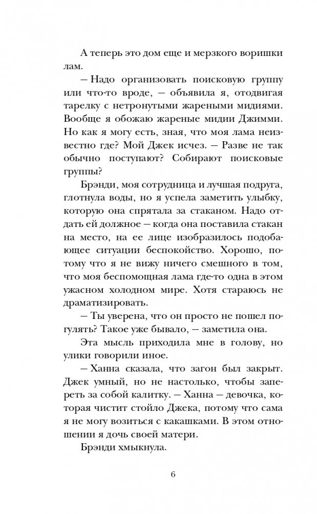 Удивительно уютный детектив от дуэта прекрасных авторов — Кэти Лав и Эрин Маккарти. Причудливые персонажи, забавные ситуации и хорошие шутки — то, что надо для приятного вечера в компании с книгой. Закрученное расследование не даст заскучать, а парирования главных героев и ворчливая лама по имени Джек Керуак заставят улыбаться с первой страницы и до последней.