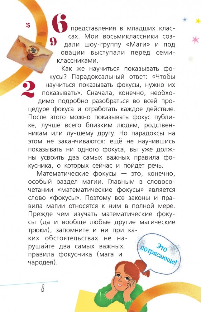 Учитель математики и популярный ютуб и тик-ток блогер Пётр Земсков решил рассказать ещё об одном своём таланте. Невероятно, но факт — Пётр Земсков волшебник. Он убеждён, что у любого, кто умеет хранить секреты, может получиться стать талантливым чародеем. Тайны настоящей магии можно постичь при помощи математики, теперь каждый может узнать, как это сделать. Эта книга — подробное описание рецептов всевозможных фокусов, трюков и иллюзий, переплетающихся с невероятными рассказами о волшебниках всего мира.