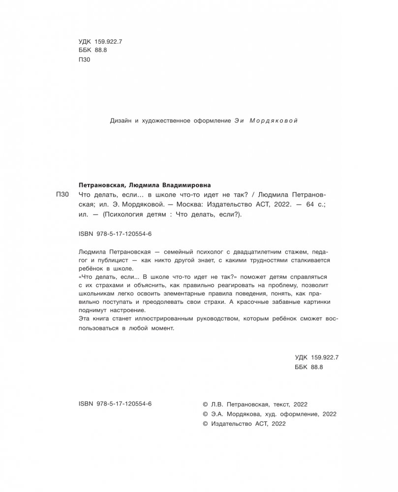 «Что делать, если... В школе что‑то идет не так?» поможет детям справляться с их страхами и объяснить, как правильно реагировать на проблему, позволит школьникам легко освоить элементарные правила поведения, понять, как правильно поступать и преодолевать свои страхи.А красочные забавные картинки поднимут настроение.