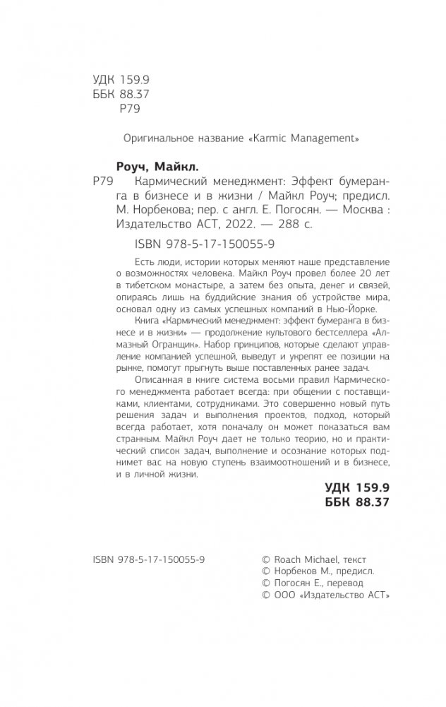 Книга "Кармический менеджмент: эффект бумеранга в бизнесе и в жизни" - продолжение культового бестселлера "Алмазный Огранщик". Набор принципов, которые сделают управление компанией успешной, выведут и укрепят ее позиции на рынке, помогут прыгнуть выше поставленных ранее задач.