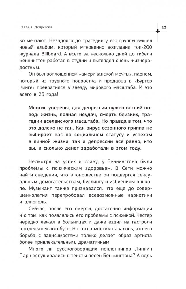 Доступно и по-человечески в книге рассказывается о состояниях, которые нужно отличать от "просто устала" и "просто настроение плохое". Мы поговорим о депрессиях, панических атаках, нарушениях пищевого поведения. Узнаем, что не только с нами случаются все эти несчастья. И великие мира сего страдали ОКР и булимией. Василий Шуров, главный нарколог клиники "Первый шаг", поделится с нами способами помочь себе и убедит пойти к врачу, когда у нас не хватает сил справиться самостоятельно. Не зря у него 500 тыс. подписчиков на ютуб канале, и он выступает в качестве эксперта на телевидении и в судебных процессах, является звездой в популярных шоу "Мужское и Женское" и "Пусть говорят".