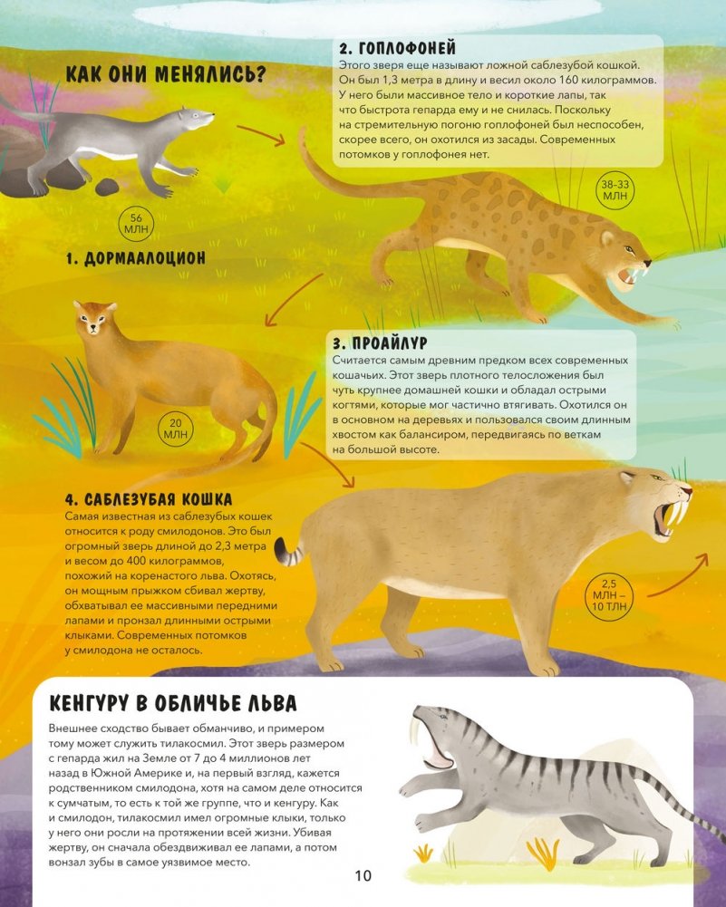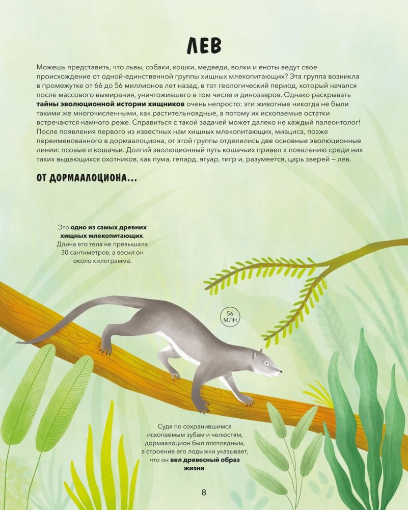 В этой энциклопедии знакомые вам животные предстанут с неожиданной стороны: оказывается, у древних птиц были зубы, а предки китов преспокойно разгуливали по суше! Благодаря наглядным примерам и красивым иллюстрациям эволюция станет простой и понятной для любого ребенка, а наша планета откроется во всем своем биоразнообразии.