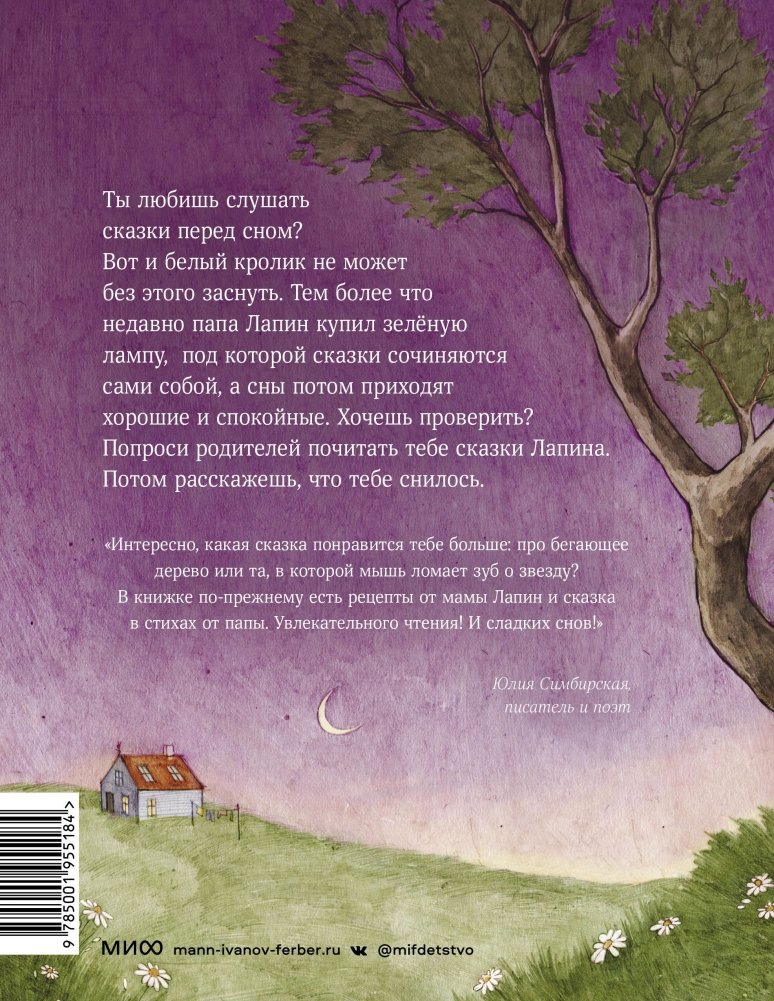Хочешь узнать, почему белый кролик Лапин спокойно спит всю ночь и видит только хорошие сны? Потому что перед сном он любит сказки — не только слушать, но рассказывать.