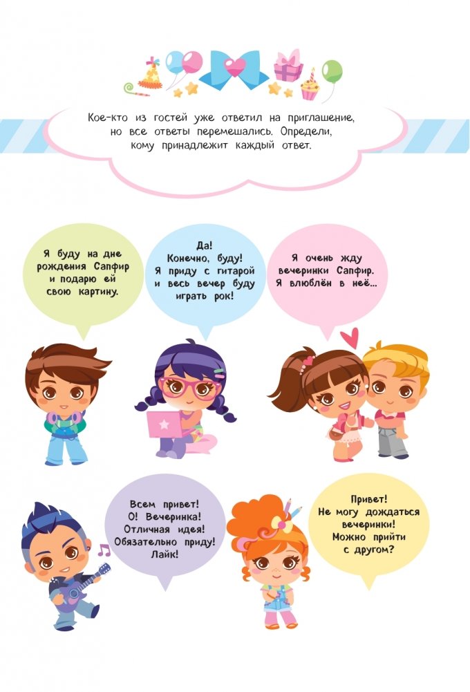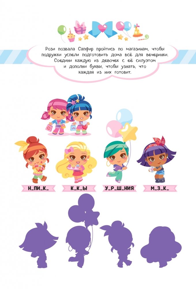 Познакомься с модными подружками и устрой незабываемую вечеринку-сюрприз в честь дня рождения Сапфир — составь приглашения, подбери угощения, укрась все вокруг, а главное, отвлекай именинницу, пока готовится праздник, — скучно в этот день не будет! Ищи отличия, проходи лабиринты, рисуй, раскрашивай, фантазируй — внутри больше двадцати веселых игр с весёлыми девчонками! Проведи время с настоящими модницами, красавицами и умницами — Тиффани, Рози, Лиззи, Виолетта, Сапфир и Блонди будут очень рады твоей компании. Окунись в мир дружбы, красоты и увлекательных головоломок, а главное, укрась все вокруг яркими, фантастически милыми наклейками!