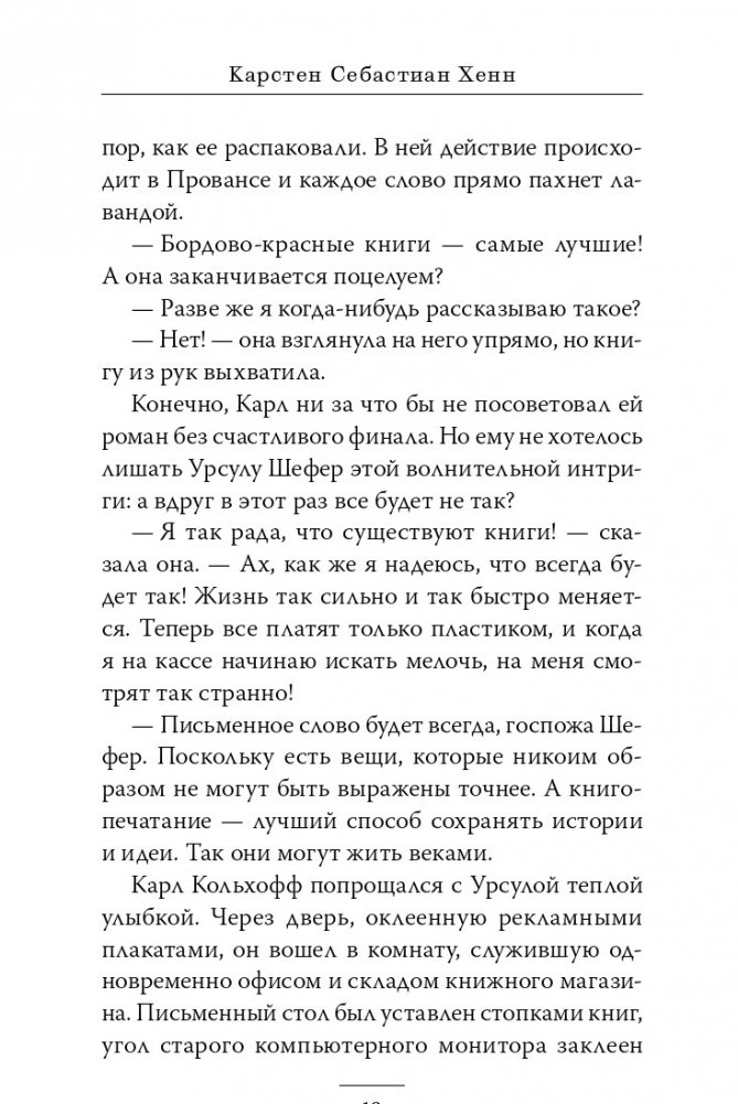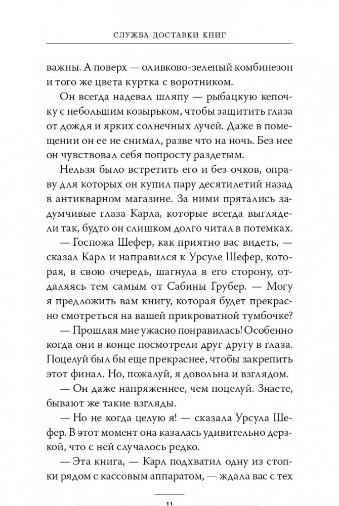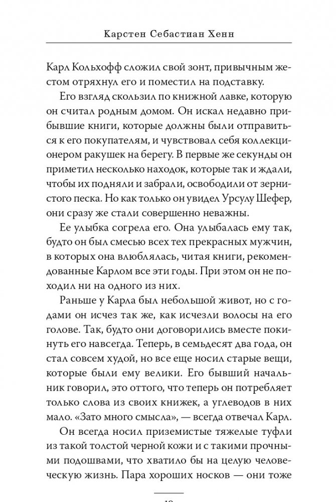 Каждый день Карл Кольхофф, пожилой продавец из книжного магазина, относит книги покупателям на дом. Это особенные покупатели, для которых Карл выбирает особенные книги. Каждого из своих клиентов Карл называет именем героя из книги (Геркулес, Фауст, Эффи и мистер Дарси) и каждого регулярно навещает, совершая книжную прогулку по одному и тому же маршруту.