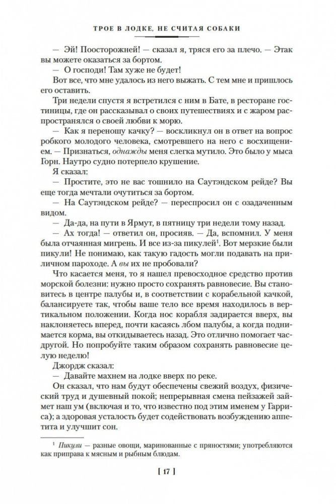 Летом 1888 года английский писатель Джером К. Джером, только что вступивший в законный брак, провел медовый месяц на Темзе. Из путевых впечатлений и воспоминаний этой счастливой поры родилась идея одной из самых смешных книг в мировой литературе. Приключения незадачливых, добродушных англичан, путешествующих по Темзе, о которых Джером написал в романе «Трое в лодке, не считая собаки» и в его продолжении «Трое на четырех колесах» (а также созданный между ними небольшой шедевр «Заметки к ненаписанному роману», в котором узнаются все те же незабываемые герои), стали хорошо известны даже в самых отдаленных уголках планеты. С неизменной любовью читатели относятся к произведениям Джерома и в России, где его замечательный талант оценили едва ли не выше, чем на родине писателя. А благодаря блистательной экранизации романа, осуществленной в 1979 году, главные роли в которой сыграли Андрей Миронов, Александр Ширвиндт и Михаил Державин, Джером стал нам еще ближе и понятнее.