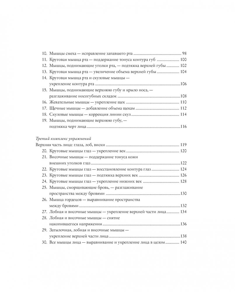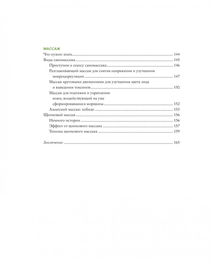 Все они снабжены подробными пошаговыми инструкциями и наглядными иллюстрациями. Помимо этого показаны различные техники самомассажа, включая разглаживающий массаж для снятия напряжения, массаж для улучшения цвета лица, массаж для подтяжки кожи, а также азиатский и щипковый массаж.