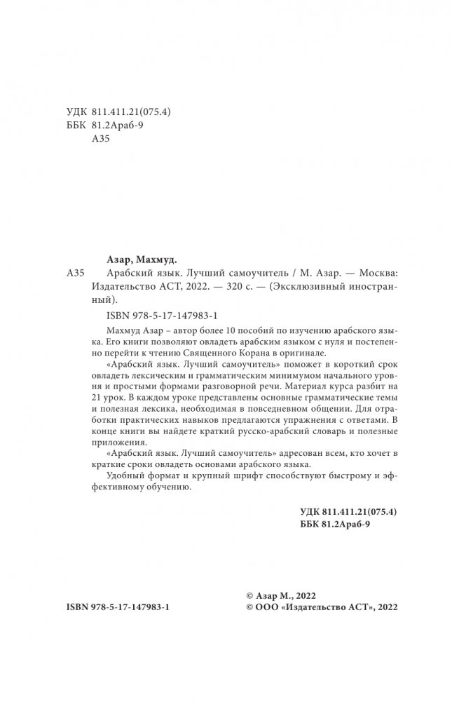 Махмуд Азар - автор более 10 пособий по изучению арабского языка. Его книги позволяют овладеть арабским языком с нуля и постепенно перейти к чтению Священного Корана в оригинале.