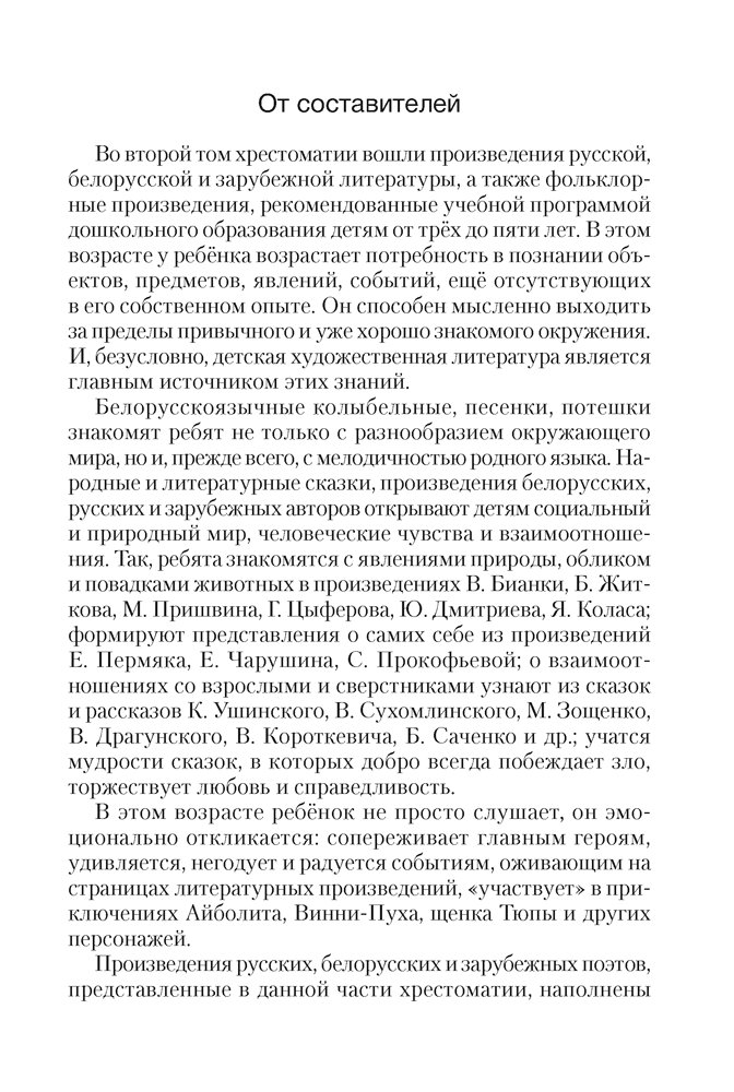 Хрестоматия включает произведения художественной литературы, рекомендованные учебной программой дошкольного образования (образовательная область «Художественная литература») для работы с детьми от 3 до 5 лет.