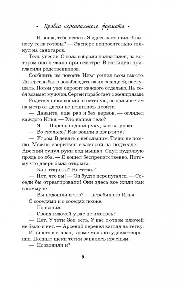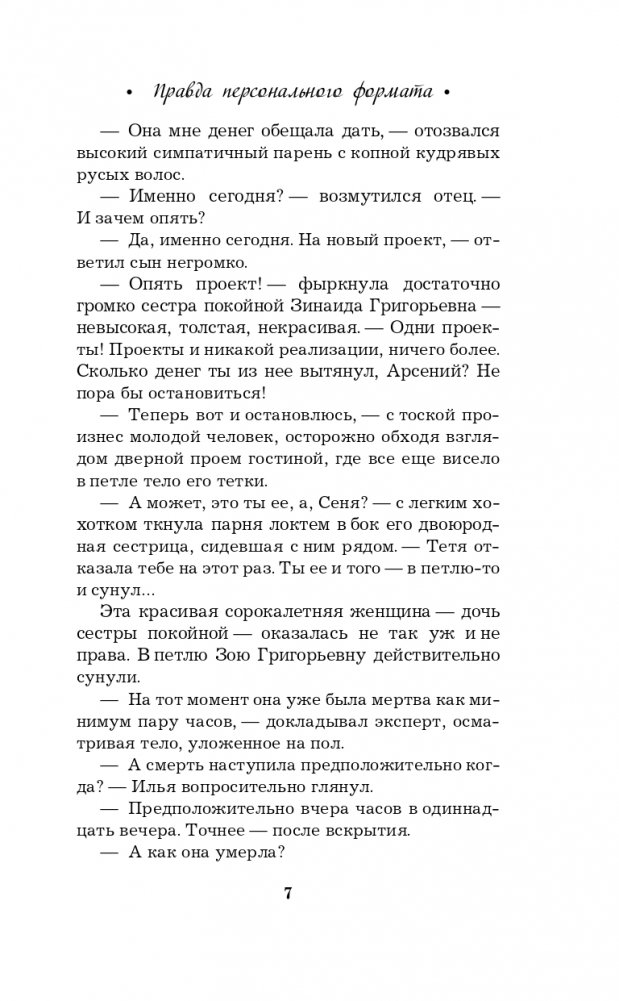 Новая книга Галины Романовой «Правда персонального формата» — очень интригующая и трогательная история о том, насколько мы ответственны за то, что делаем со своей собственной жизнью. Несколько увлекательных сюжетных линий, повествующих о судьбах разных людей, развиваются параллельно, чтобы в финале сплестись в тугой узел, когда все тайны будут раскрыты, а злодеи — выведены на чистую воду.