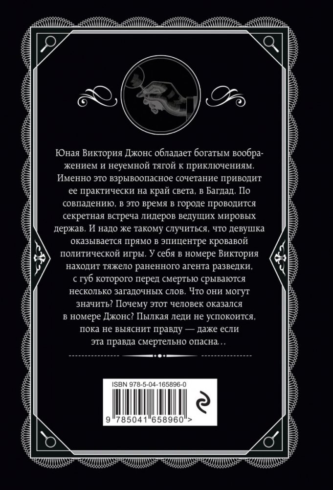 Юная Виктория Джонс обладает богатым воображением и неуемной тягой к приключениям. Именно это взрывоопасное сочетание приводит ее практически на край света, в Багдад. По совпадению, в это время в городе проводится секретная встреча лидеров ведущих мировых держав. И надо же такому случиться, что девушка оказывается прямо в эпицентре кровавой политической игры. У себя в номере Виктория находит тяжело раненного агента разведки, с губ которого перед смертью срываются несколько загадочных слов. Что они могут значить? Почему этот человек оказался в номере Джонс? Пылкая леди не успокоится, пока не выяснит правду — даже если эта правда смертельно опасна…