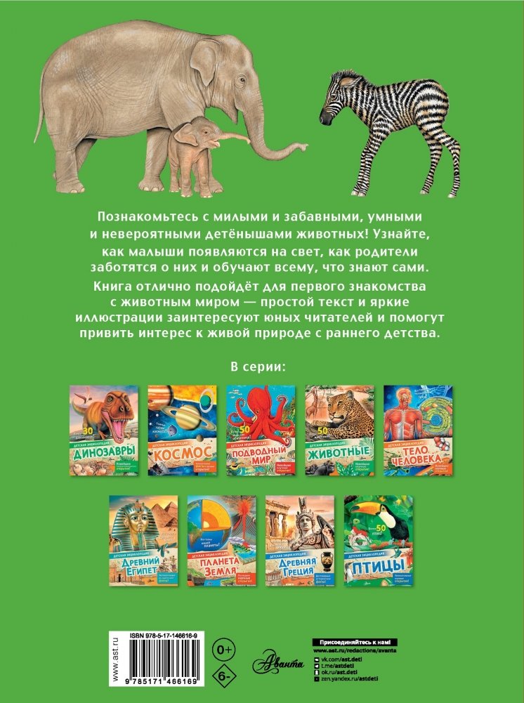 Книга "Детёныши животных" из серии "Детская энциклопедия" расскажет детям об удивительных и очаровательных детёнышах животных со всего света. Как детёныши появляются на свет? Как учатся защищать себя? Какие животные заботятся о потомстве, а какие оставляют малышей одних? Это издание прекрасно подходит для первого знакомства с миром животных, ведь здесь собрано огромное количество познавательных фактов. Энн МакРей, автор множества детских научно-популярных книг, интересно рассказывает о простом и сложном, собирает воедино наиболее полезные и увлекательные факты. А яркие иллюстрации отлично дополняют текст и заинтересуют как маленьких, так и взрослых читателей.