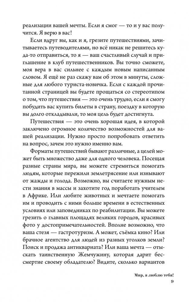 Вы научитесь не только самостоятельно организовывать путешествия и прокладывать маршруты, но и поймете, как поступить в сложной ситуации в незнакомой стране. А еще вы узнаете,как живут люди в самых отдаленных местах планеты и как привнести в свой рутинный быт частичку волшебства из других стран.