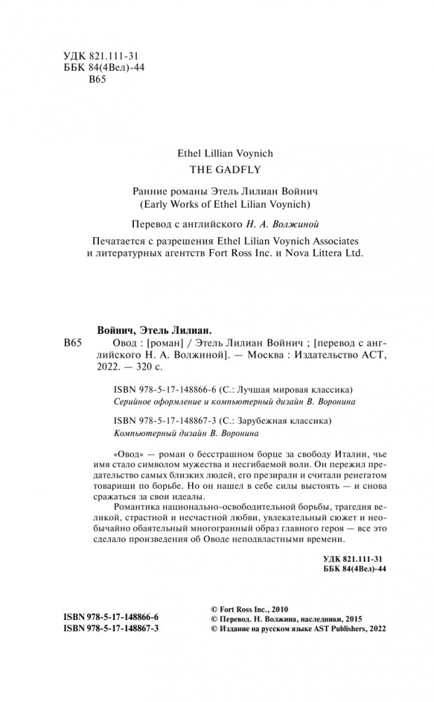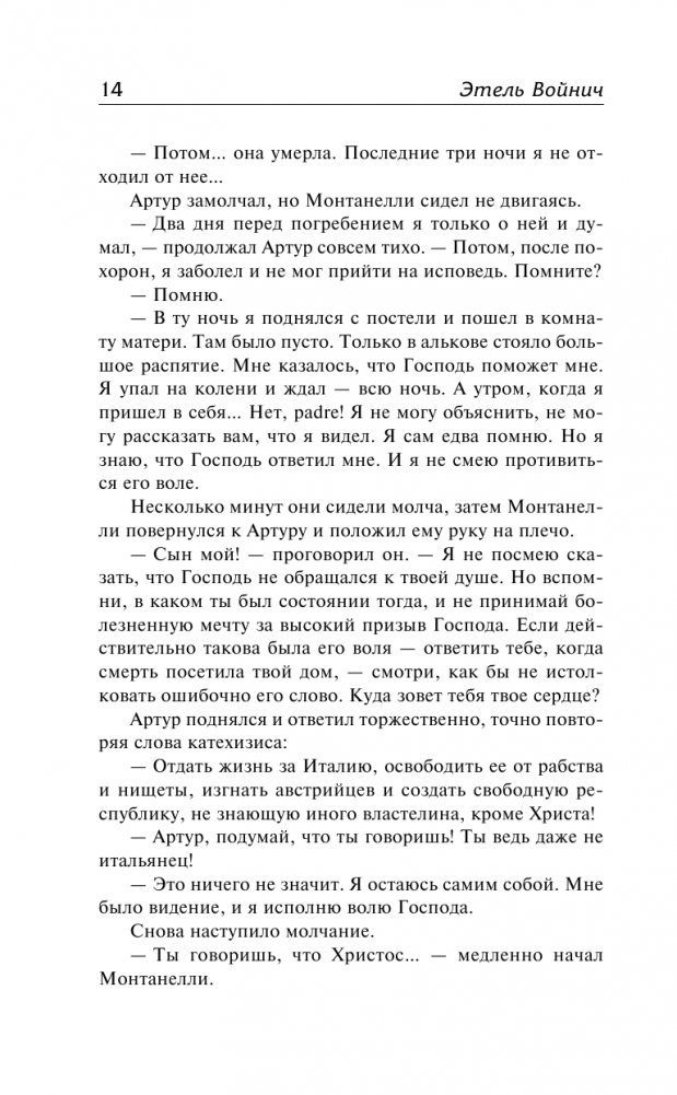 "Овод" — роман о бесстрашном борце за свободу Италии, чье имя стало символом мужества и несгибаемой воли. Он пережил предательство самых близких людей, его презирали и считали ренегатом товарищи по борьбе. Но он нашел в себе силы выстоять — и снова сражаться за свои идеалы.