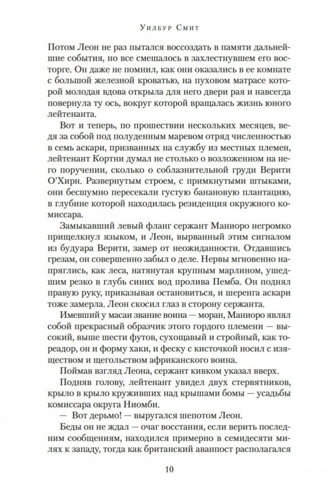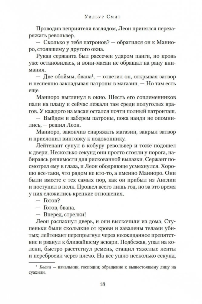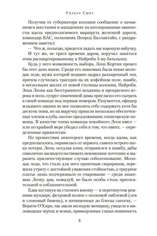 У Леона упрямый и независимый характер, как у всех мужчин в семье Кортни. Поссорившись с отцом, ушел из дому; завербовавшись в армию, нарушил приказ командира... Военный суд вынес ему оправдательный приговор, но теперь в послужном списке Леона «большая черная клякса», и его дядя, полковник Баллантайн, предлагает ему начать новую карьеру в британской военной разведке. В начале XX столетия Германия, имевшая обширные колонии в Восточной Африке, укрепила свою военную мощь и, по некоторым сведениям, готовилась к войне, поэтому британские спецслужбы усилили наблюдение за приграничными территориями. Леону, отличному охотнику и большому другу племени масаи, поручают сбор информации о передвижениях людей и техники у границы. Он работает под прикрытием как организатор сафари для высокопоставленных немцев. Вскоре в Африку приезжает поохотиться граф Отто фон Мирбах, известный промышленник, на чьих заводах строятся аэропланы и автомобили для кайзеровской армии. Но целью Мирбаха оказывается не только крупная дичь. Леон проникает в его замысел в тот момент, когда ему неоткуда ждать помощи и не у кого просить совета. Начинается большая охота, в которой преследователь и преследуемый могут внезапно поменяться ролями... Кортни и Баллантайны — в одном цикле о великолепной и грозной Африке!