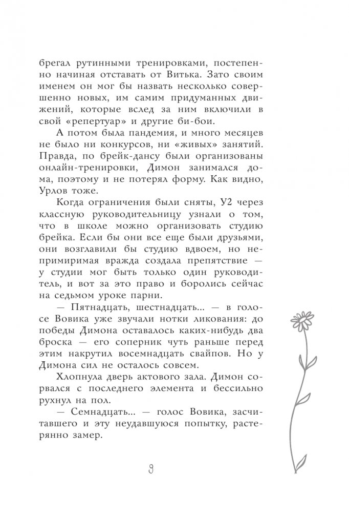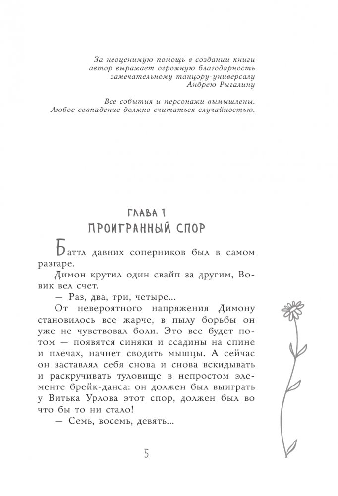 Димон считал, что во всем ему не везет: важный спор проиграл, контрольную по математике как пить дать завалит, да еще мама пригласила в гости аж трех девчонок, и жить они будут в его комнате! Жизнь повернулась к девятикласснику тёмной стороной, зато предоставила шанс от души пожалеть себя. Неизвестно, чем закончилось бы движение Димки ко дну, если бы не танцы — брейк и бальные — и одна рыжая пятнадцатилетняя девушка, похожая на фею…