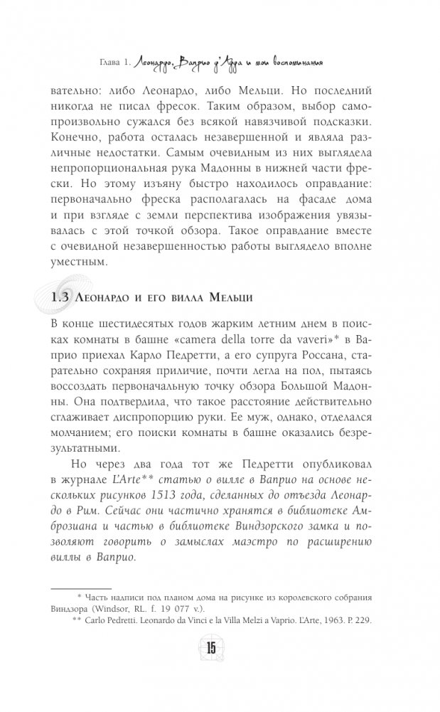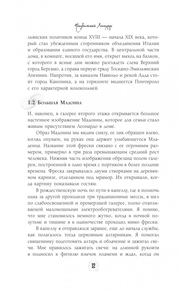 Великий Леонардо да Винчи никогда не был женат и не имел детей, но всегда окружал себя учениками, которые помогали ему в работе и вдохновляли на творчество. Франческо Мельци был, вероятно, последним большим увлечением Леонардо. Он познакомился с молодым человеком, тогда еще совсем ребенком, когда часто останавливался у его отца в имении Ваприо на берегу Адды, близ Милана. В возрасте пятнадцати лет Франческо Мельци, очарованный Леонардо, поступил к нему учеником. Между ними установились доверительные, более чем дружеские отношения, о чем свидетельствуют записи Леонардо. Свое время, жизнь и состояние Мельци всецело и навсегда предоставил в распоряжение Леонардо и на протяжении одиннадцати лет, вплоть до смертного часа Леонардо, он окружал его поистине сыновней любовью и заботой. После смерти своего наставника Мельци остался его наследником. Перед вами уникальная книга, ее автор Джан Вико Мельци д'Эрил, потомок Франческо Мельци, не только до сих пор живет на вилле, давшей приют великому художнику и его лучшему ученику, но и владеет уникальными, до сих пор не публиковавшимися свидетельствами, которые он решил предать огласке. Эта книга проливает свет на многие тайны, знакомит с малоизвестными подробностями – и читается как детектив, основанный на реальных событиях.
