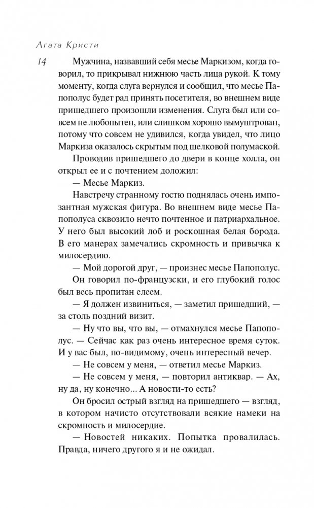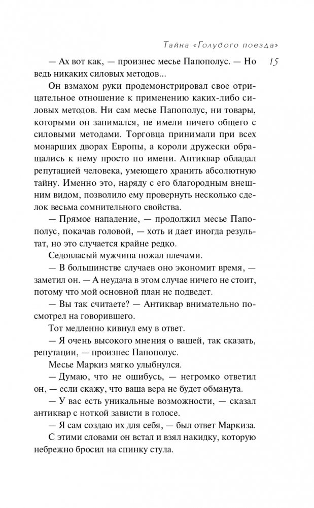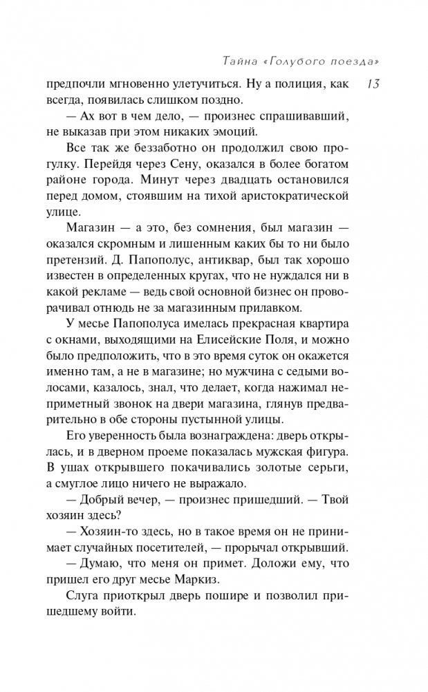 Все вокруг него только и говорят, что о загадочном похитителе драгоценностей по кличке Маркиз, и полностью уверены, что это преступление — его рук дело. Однако Пуаро получил информацию о том, что незадолго до того, как несчастную женщину обнаружили мертвой, из ее купе выходил муж Рут, Дерек…