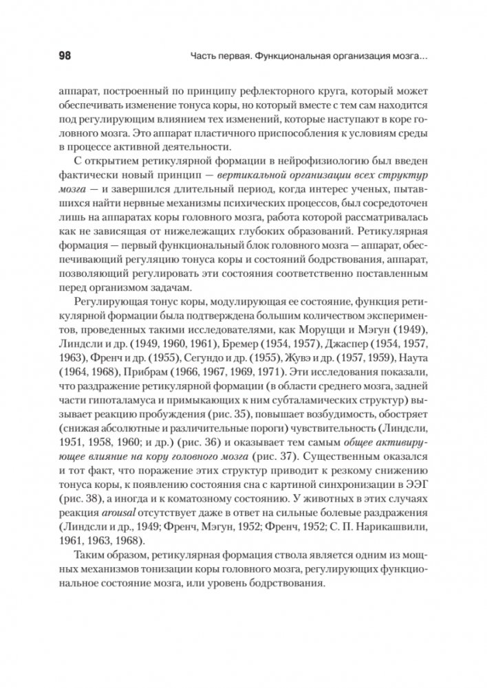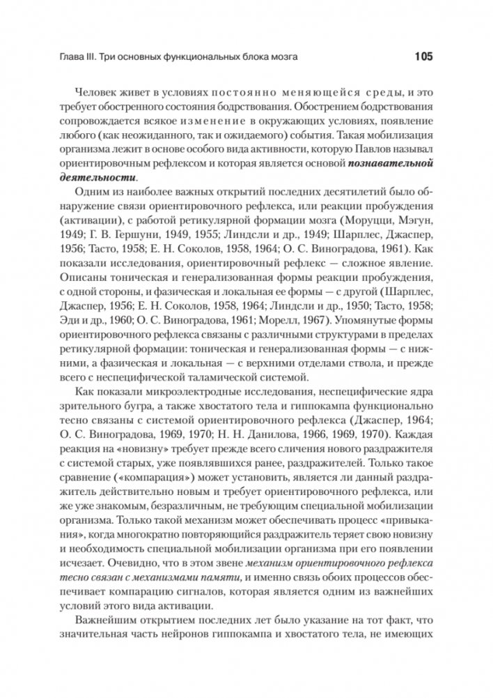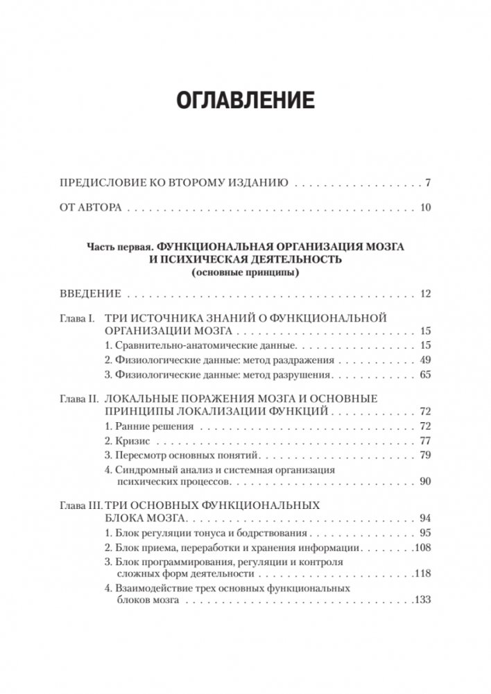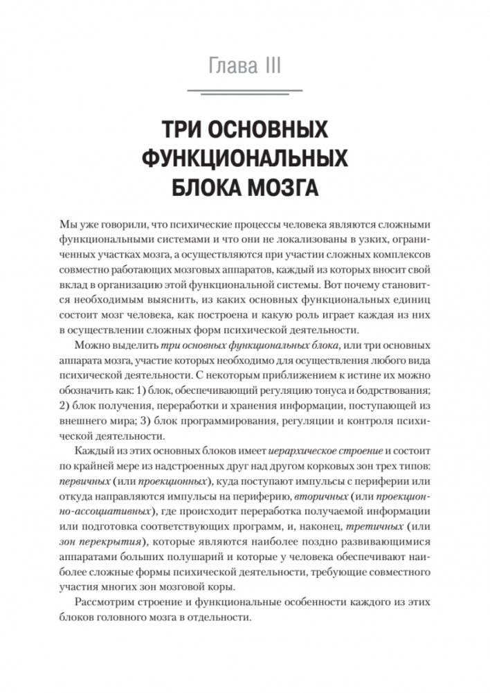 Книга крупнейшего отечественного нейропсихолога Александра Романовича Лурии построена как учебный курс, в котором кратко излагается содержание нейропсихологии как учебной дисциплины. Автор подробно анализирует психологическую структуру и мозговые механизмы отдельных психических процессов - восприятия, произвольных движений и действий, внимания, памяти, речи, мышления. Раскрывает популярную сегодня среди нейропсихологов и клиницистов модель трех основных блоков мозга, в которой реализованы представления автора о целостном характере деятельности мозга при осуществлении психических процессов и об основных типах их нарушений.