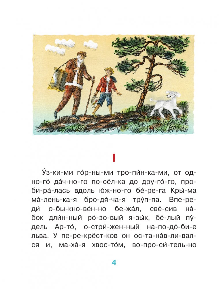 В книгу вошёл рассказ "Белый пудель" классика отечественной литературы Александра Ивановича Куприна. История о пуделе Арто, добром дедушке Мартыне и храбром мальчике Серёже основана на реальных событиях и учит доброте, преданности и умению дружить. Хрестоматийный рассказ немного сокращён, все слова разделены на слоги, проставлены ударения, чтобы малыш смог легко прочитать текст самостоятельно. Кроме того, физкультминутки с пальчиковой гимнастикой помогут активизировать работу мозга, а дополнительные упражнения улучшат технику чтения.
