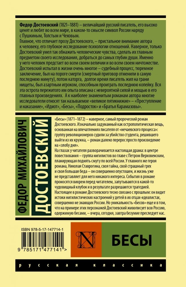 "Бесы" (1871-1872 гг.) — наверное, самый пророческий роман Достоевского. Изначально задуманный как острополитическая вещь, основанная на впечатлениях писателя от "нечаевского процесса": группу революционеров судили за убийство студента, решившего выйти из их кружка, — роман далеко перерос просто произведение на "злобу дня".