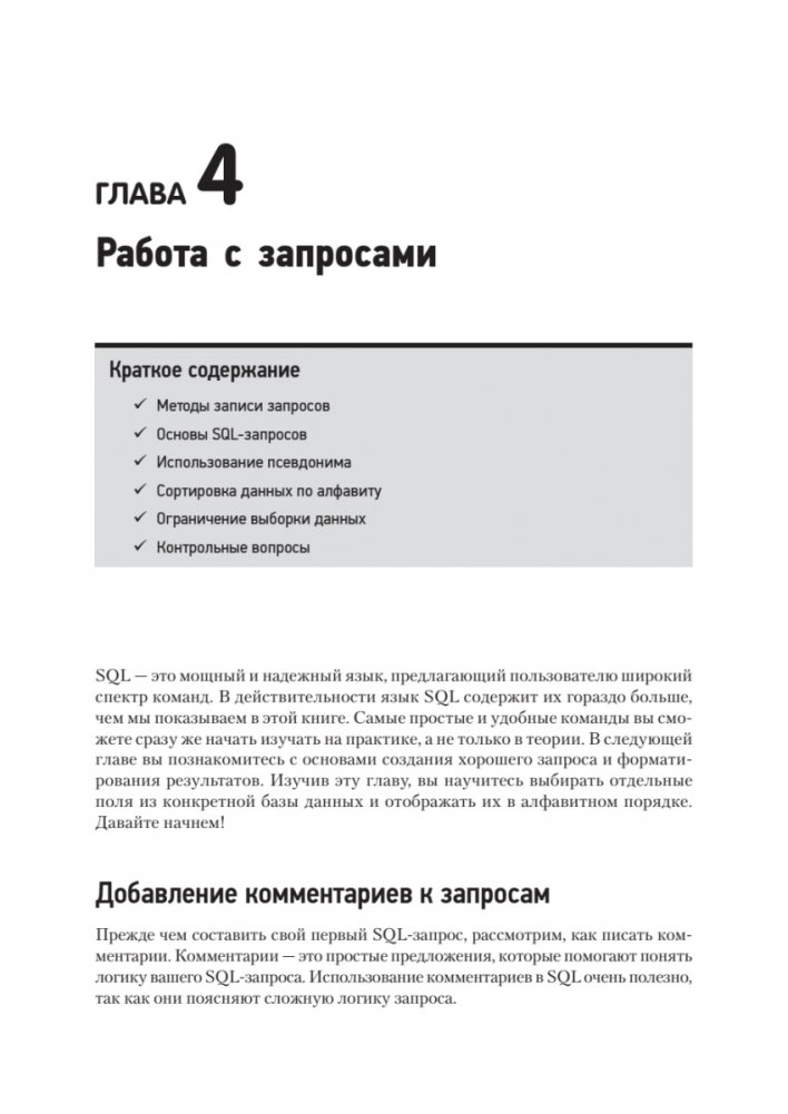 Книга «SQL: быстрое погружение» идеальна для всех, кто ищет новые перспективы карьерного роста; для разработчиков, которые хотят расширить свои навыки и знания в программировании; для любого человека, даже без опыта, кто хочет воспользоваться возможностями будущего, в котором будут править данные.