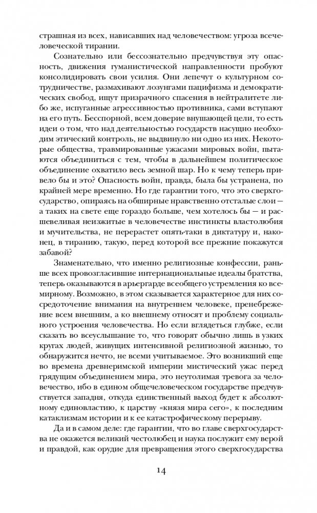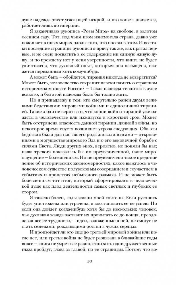 «...я принадлежу к тем, кто смертельно ранен двумя великими бедствиями: мировыми войнами и единоличной тиранией. Такие люди не верят в то, что корни войн и тираний уже изжиты в человечестве или изживутся в короткий срок. Может быть отстранена опасность данной тирании, данной войны, но некоторое время спустя возникнет угроза следующих. Оба эти бедствия были для нас своего рода апокалипсисами — откровениями о могуществе мирового Зла и о его вековечной борьбе с силами Света». — Даниил Андреев