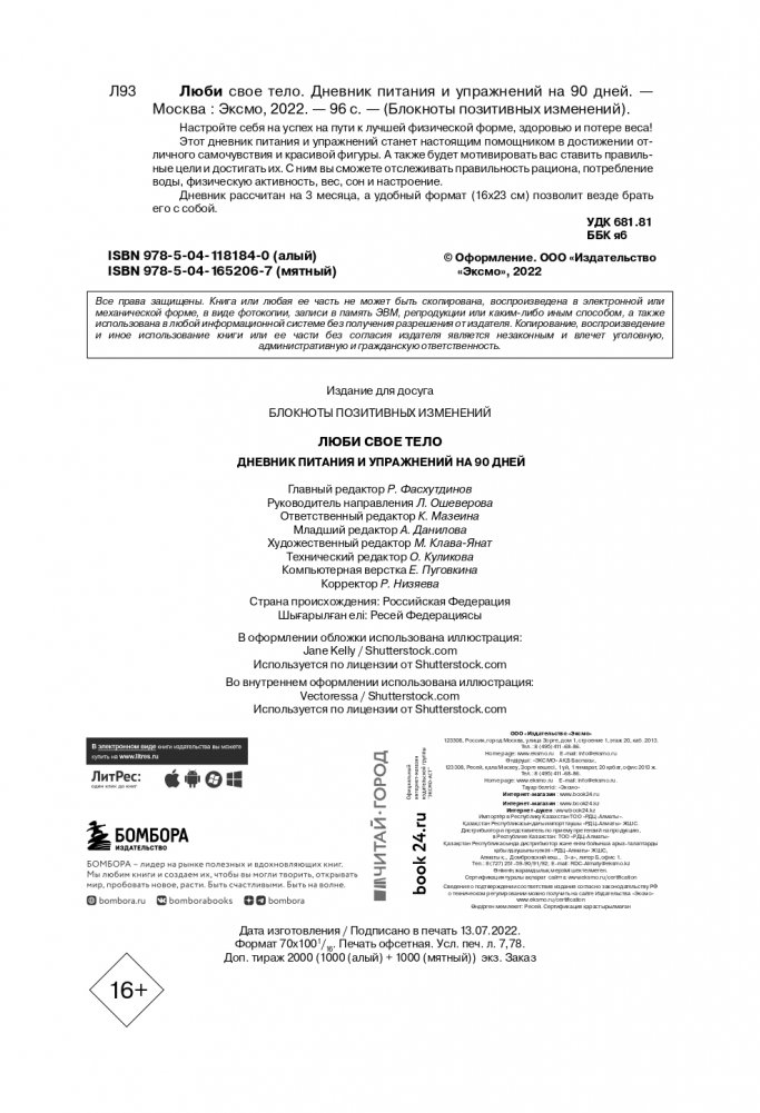 Люби свое тело. Дневник питания и упражнений на 90 дней (мятный)
