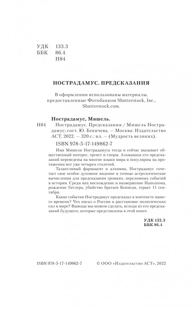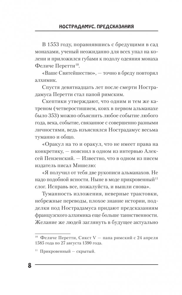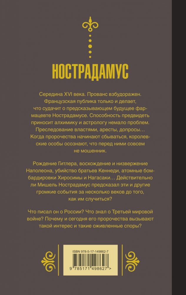 Имя Мишеля Нострадамуса тогда и сейчас вызывает общественный интерес, трепет и споры. Альманахи его предсказаний переведены на многие языки мира и популярны на протяжении вот уже четырех столетий.