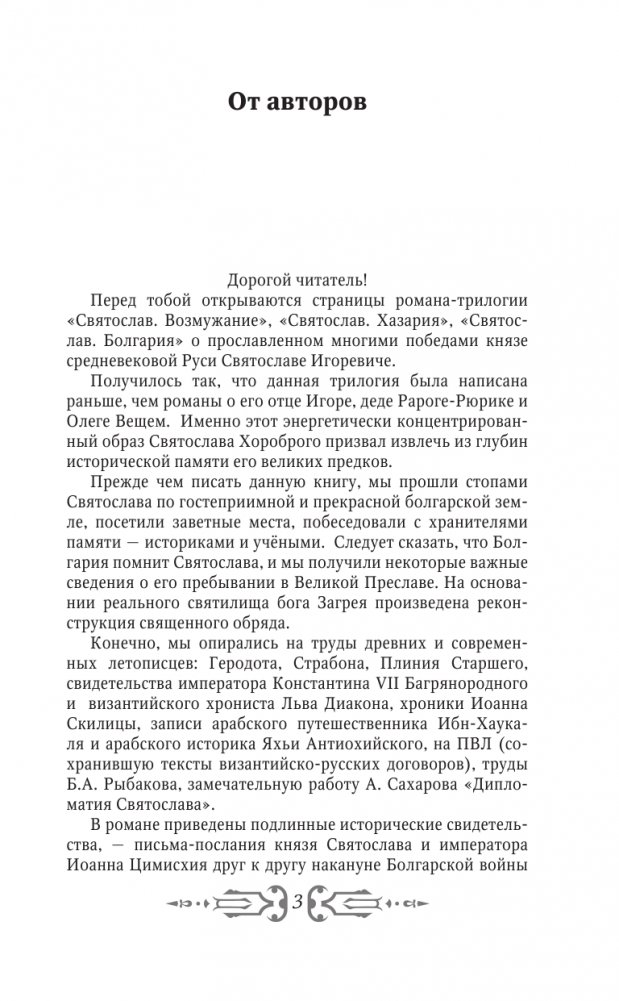 Книга читается на одном дыхании: правление княгини Ольги, подробности ведического обучения, любви и ратного возмужания Святослава, романтические эпизоды и захватывающие батальные сцены доставят читателям истинное удовольствие. Совершите неповторимое волшебное путешествие в глубины генетической памяти русского народа!