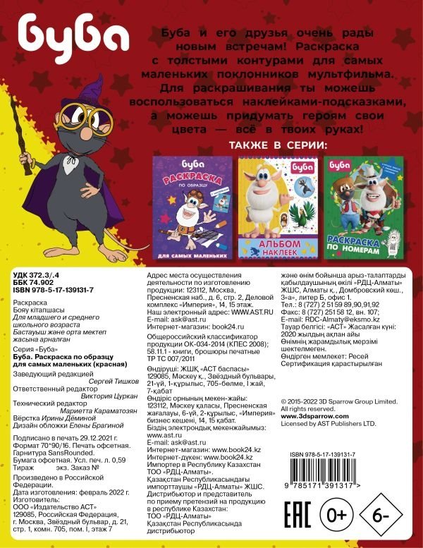 Буба и его друзья очень рады новым встречам! Раскраска с толстыми контурами для самых маленьких поклонников мультфильма. Для раскрашивания ты можешь воспользоваться наклейками‑подсказками, а можешь придумать героям свои цвета — всё в твоих руках!