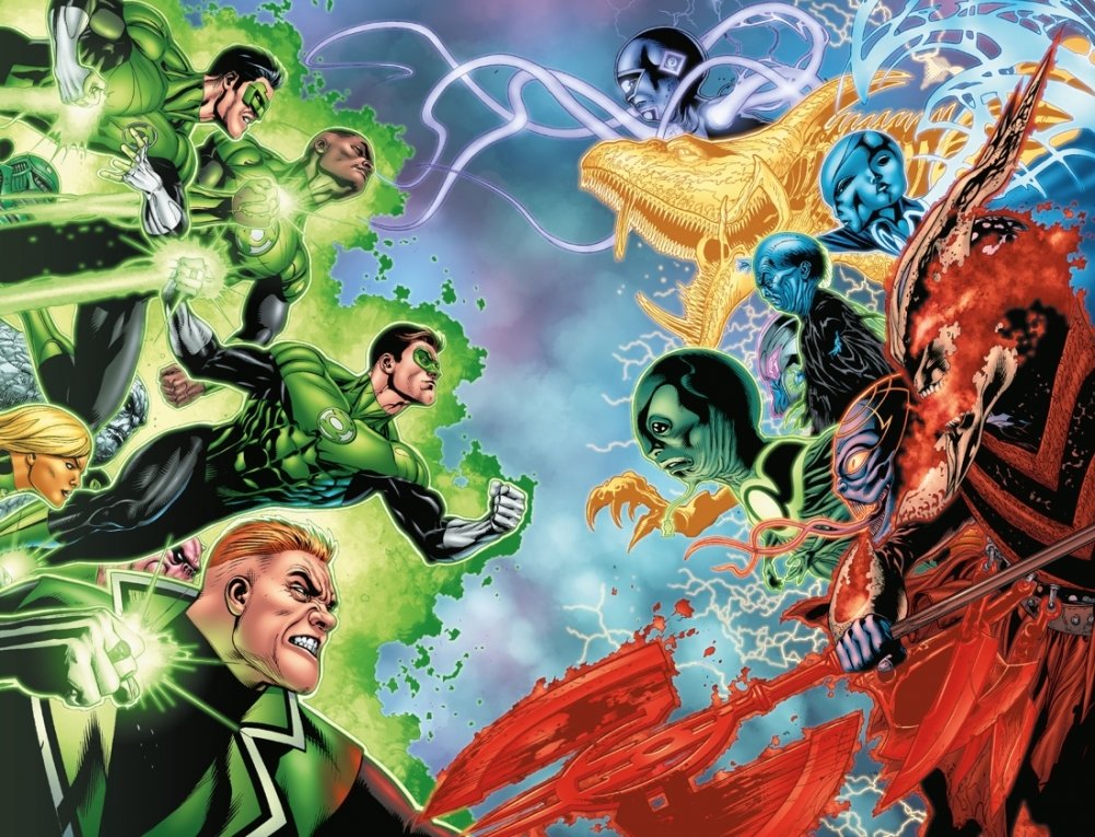 Хэл Джордан, Джон Стюарт, Кайл Рэйнер и Гай Гарднер – полицейские Корпуса Зеленых Фонарей. Под руководством Стражей Зеленые Фонари поддерживают во Вселенной порядок с помощью своих Колец Силы.