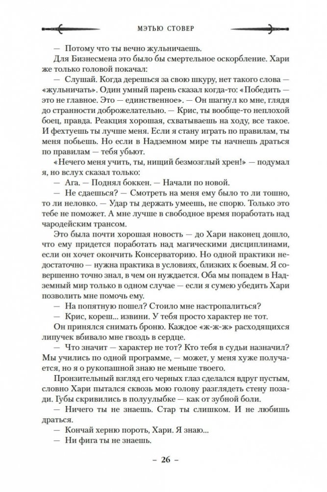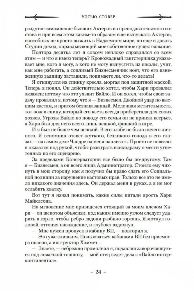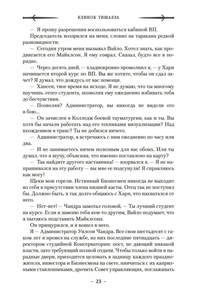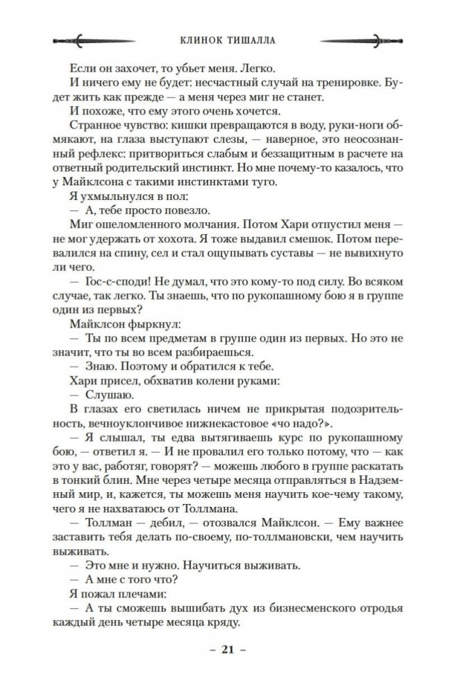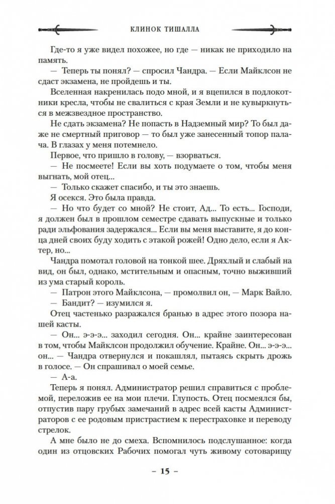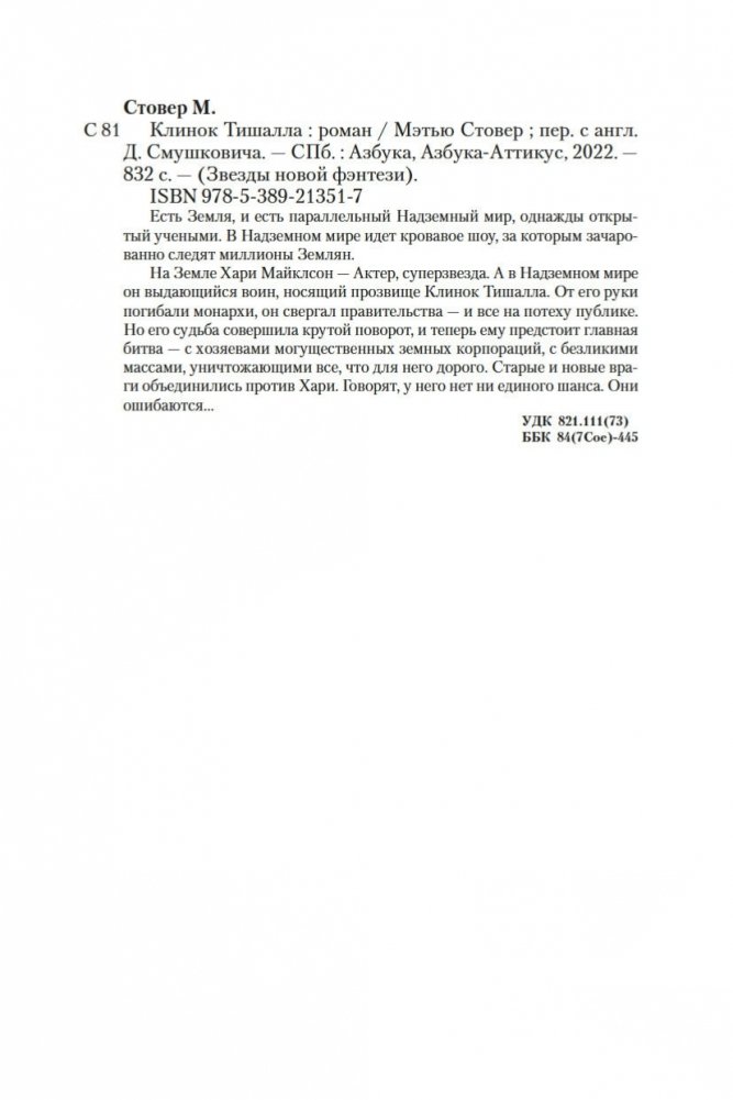 Есть Земля, и есть параллельный Надземный мир, однажды открытый учеными. В Надземном мире идет кровавое шоу, за которым зачарованно следят миллионы Землян. На Земле Хари Майклсон — Актер, суперзвезда. А в Надземном мире он выдающийся воин, носящий прозвище Клинок Тишалла. От его руки погибали монархи, он свергал правительства — и все на потеху публике. Но его судьба совершила крутой поворот, и теперь ему предстоит главная битва — с хозяевами могущественных земных корпораций, с безликими массами, уничтожающими все, что для него дорого. Старые и новые враги объединились против Хари. Говорят, у него нет ни единого шанса. Они ошибаются…