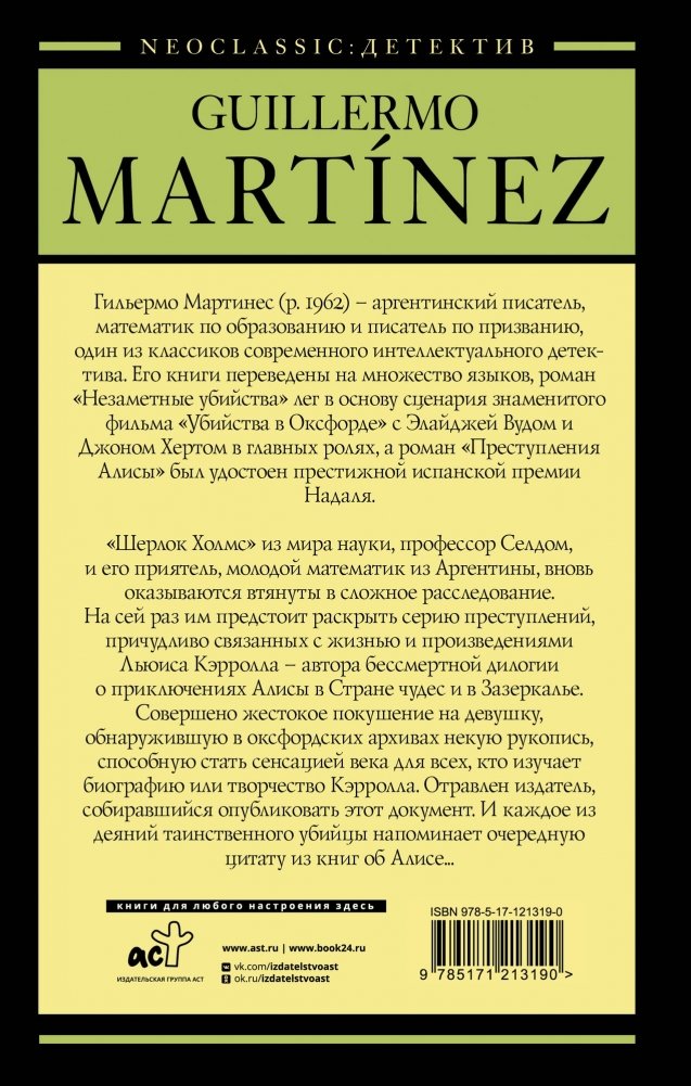 "Шерлок Холмс" из мира науки – профессор Селдом и его приятель, молодой математик из Аргентины, вновь оказываются втянуты в сложное расследование. На сей раз им предстоит раскрыть серию преступлений, причудливо связанных с жизнью и произведениями Льюиса Кэрролла – автора бессмертной дилогии о приключениях Алисы в Стране чудес и в Зазеркалье.