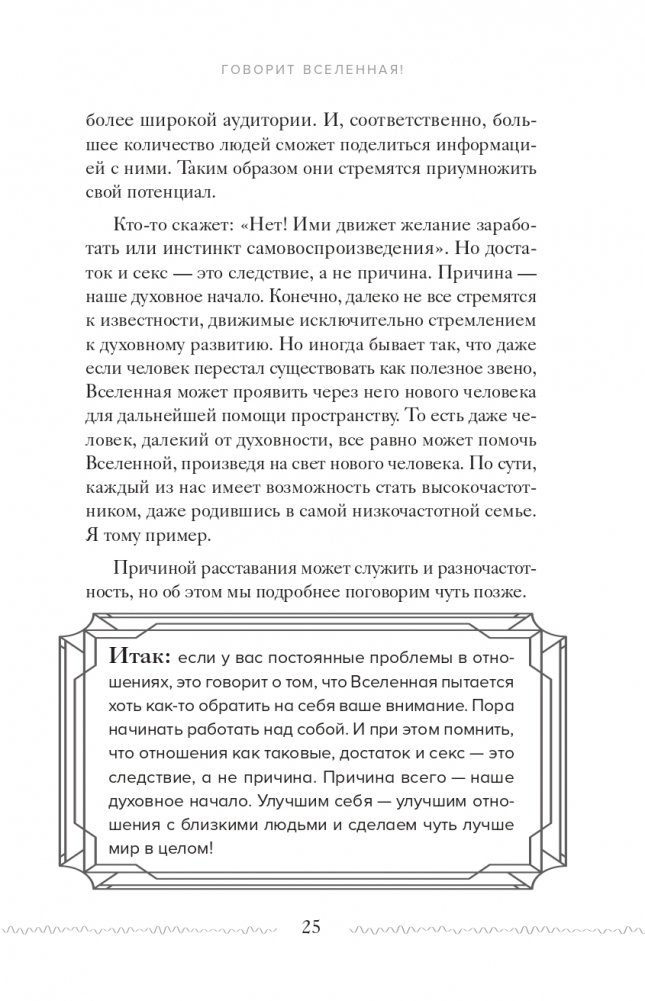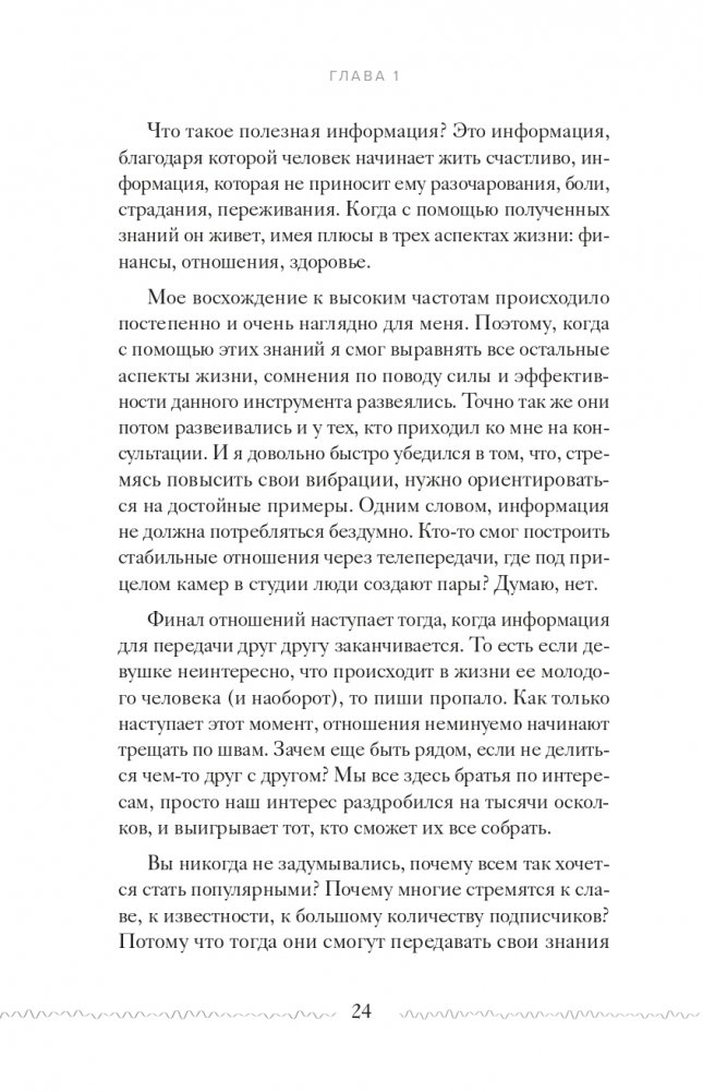 Труд по достижению счастья — это не лопатой целину поднимать. Это труд необычный, другой. Когда вы всё попробовали, а отношения не строятся, здоровье всё хуже и хуже, приличной работы не предвидится: самое время сменить частоту и услышать вселенную. Видеть, а не смотреть, Быть, а не присутствовать. Если знать, как работают высокие вибрации, — нерешаемых задач не останется. В условиях стресса и всеобщей неопределенности — авторская методика по улучшению качества собственной жизни приносит желанный успех.