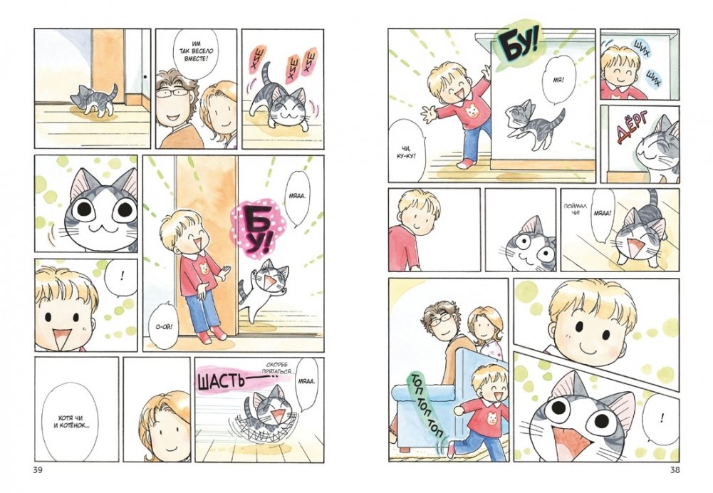 Не желая расставаться с Коччи ни на минуту, Чи приводит друга в гости. Но правила её семьи совсем не подходят свободолюбивому котёнку – разбойник так и рвётся на волю. А вот Чи, наоборот, поняла, что нет места лучше родного дома, где можно сладко поспать в тепле и уюте. Но почему Чи так отличается от папы, мамы и даже Ёхэя? Ни у кого из них нет хвостика и треугольных ушек... Неужели они ей не родня? А кто тогда?