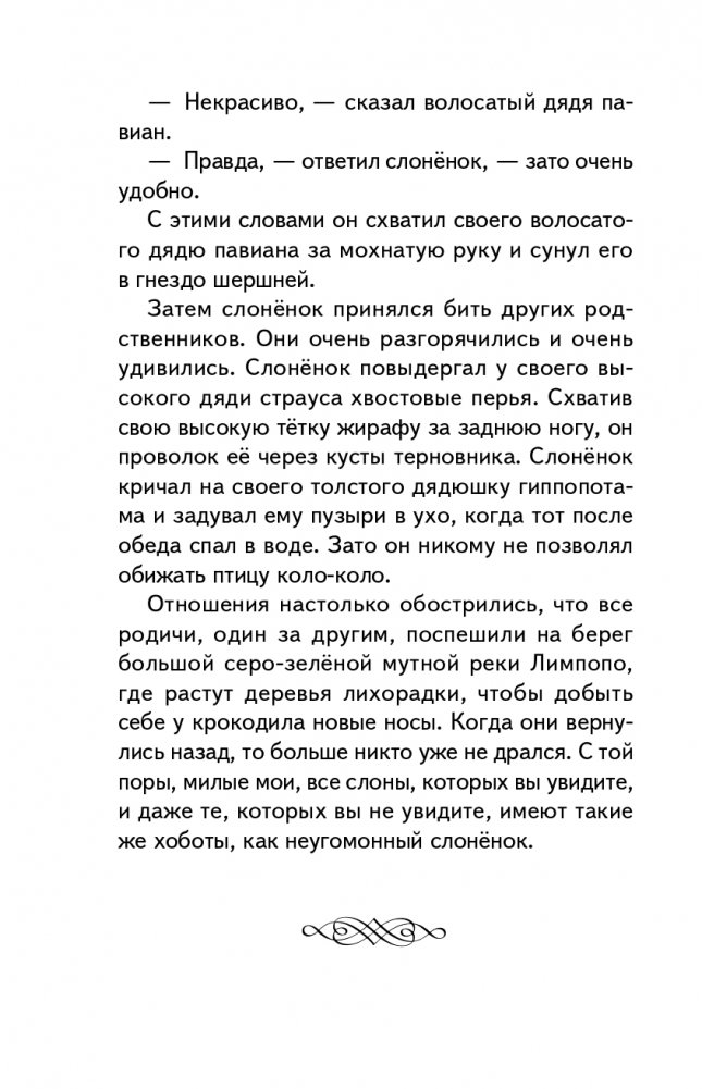 Почему у слона на голове хобот? Откуда у верблюда горб? Как появились первые кенгуру и броненосцы? Зачем животные покрыты пятнами? На самые неожиданные вопросы детей ответят всемирно известные сказки Редьярда Киплинга, вошедшие в этот сборник. А ещё дети узнают героическую историю мангуста Рикки-Тикки-Тави, который защищал своих хозяев от коварных ядовитых змей. Захватывающие истории помогут маленьким читателям отправиться в фантастическое путешествие и подружиться с самыми интересными обитателями жарких стран.