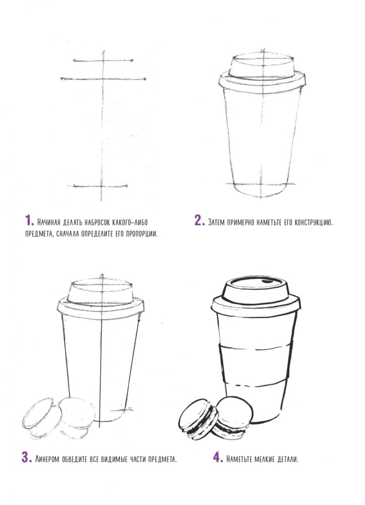 - узнаете, как нарисовать все, что угодно — от простой чашки кофе до яркого и красивого попугая;