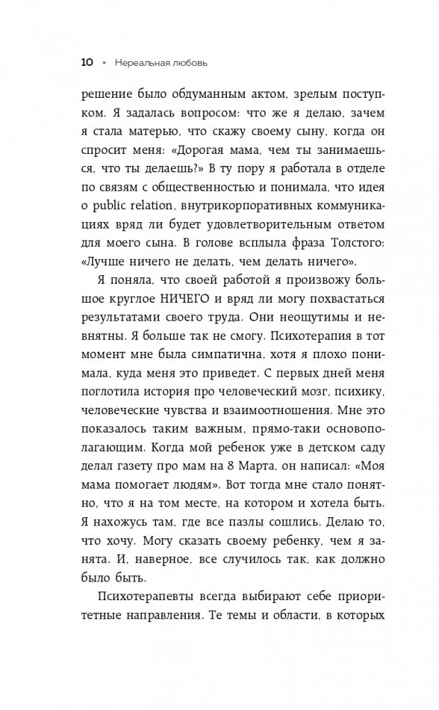 «Нереальная любовь» — результат ее многочисленных исследований на тему отношений. За 15 лет работы системным и провокативным психотерапевтом она провела тысячи сессий с парами, супругами и точно знает, как избавить вас от страха и блокирующих убеждений, которые мешают обрести счастье и подходящего партнера.