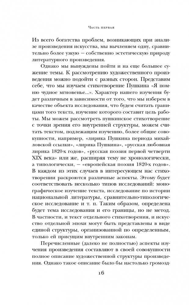В своей монографии автор ставит в центр изложения вопросы методики анализа поэтического текста и стиха. Его цель — не только ознакомить читателя с результатами, полученными тем или иным ученым, сколько вооружить его методами, которые позволили бы ему самостоятельно обнаружить скрытые смыслы любимых художественных и поэтических текстов.