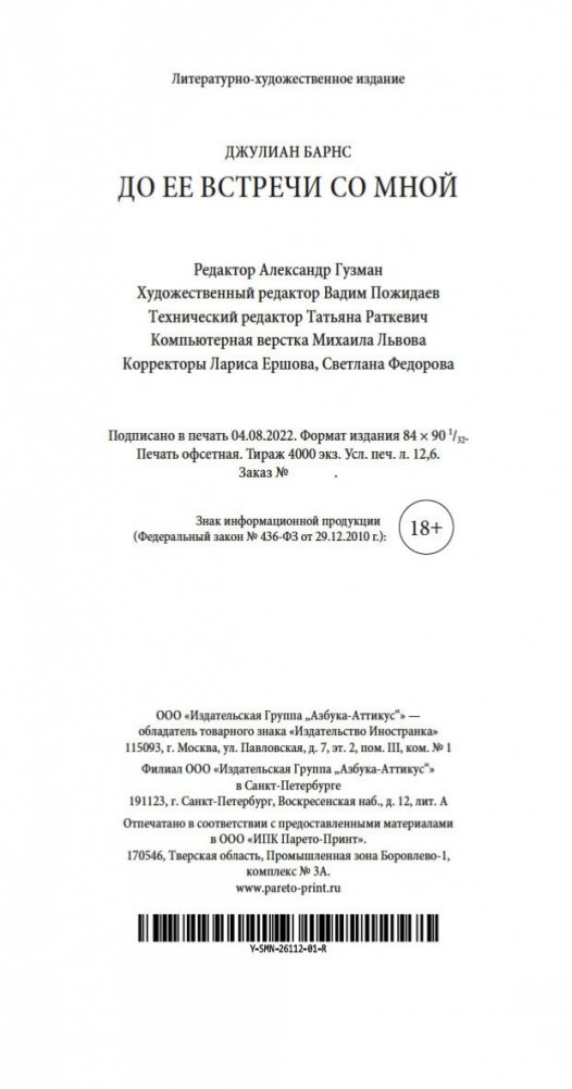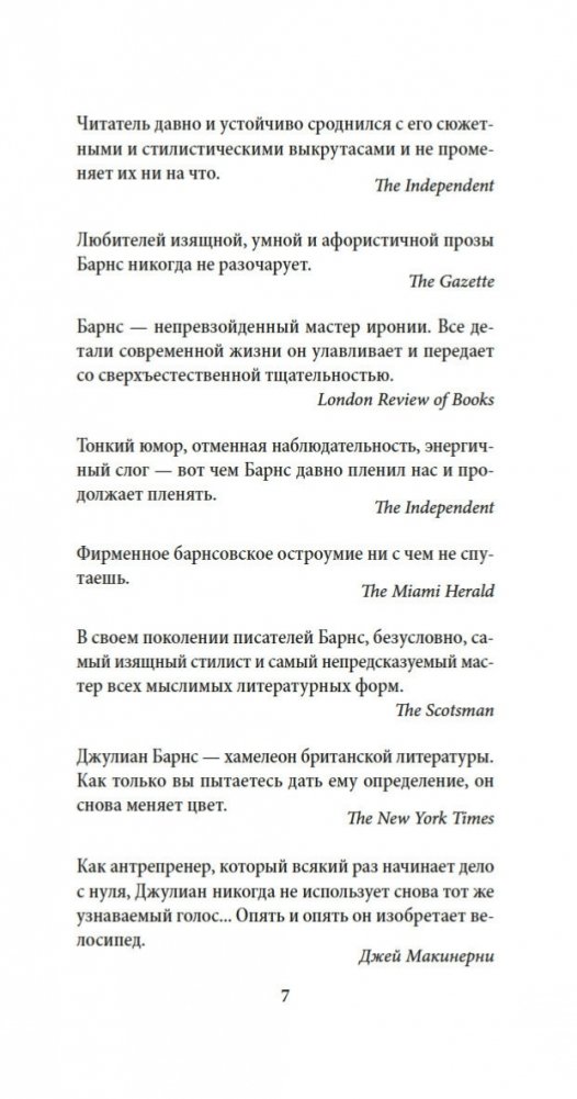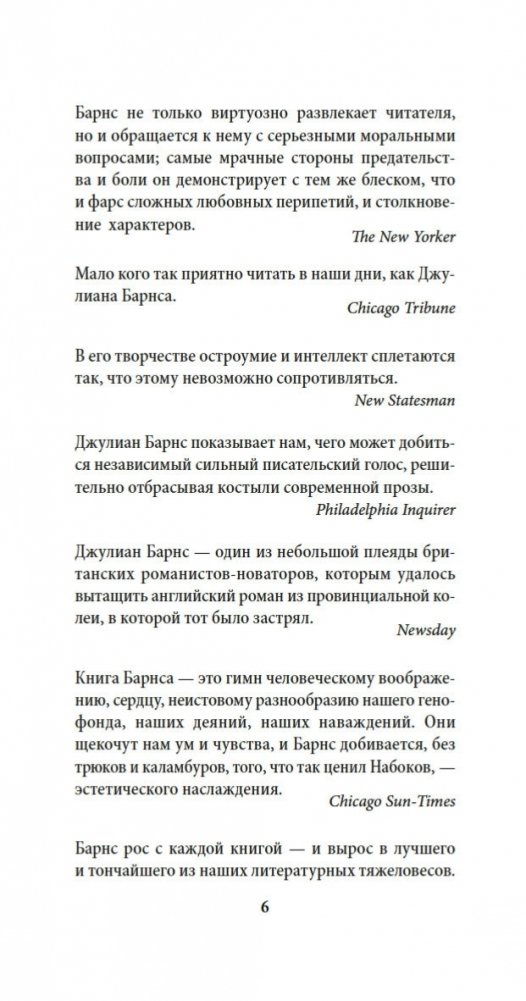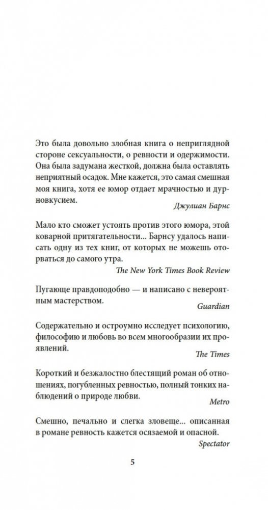Лауреат Букеровской премии Джулиан Барнс — один из самых ярких и оригинальных прозаиков современной Британии, автор таких международных бестселлеров, как «Одна история», «Шум времени», «Предчувствие конца», «Артур и Джордж», «История мира в 10½ главах», «Попугай Флобера» и многих других. Возможно, основной его талант — умение легко и естественно играть стилями и направлениями. Тонкая стилизация и едкая ирония, утонченный лиризм и доходящий чуть ли не до цинизма сарказм, агрессивная жесткость и веселое озорство — Барнсу подвластно все это и многое другое. Что сильнее — любовь или ревность? И как вообще возможна ревность к прошлому, ко всем тем мужчинам, которых знала бывшая актриса Энн «до ее встречи со мной»? Такими вопросами одержимо терзается Грэм, преподаватель политической истории, и не находит себе места, превращая собственную жизнь в жестокий фарс... Роман публикуется в новом переводе.
