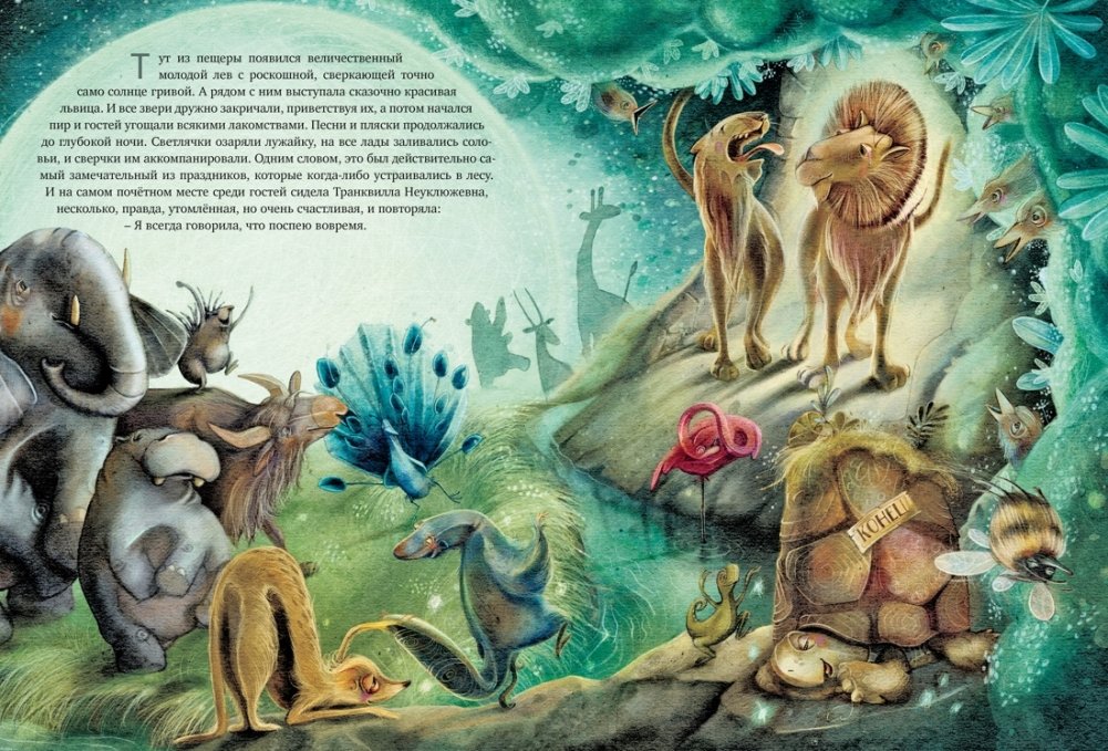 Султан Лев Двадцать Восьмой пригласил всех животных на свою свадьбу, и черепаха Транквилла Неуклюжевна принимает твёрдое решение непременно попасть на торжество. Впереди её ждёт долгий и тернистый путь через леса, пески и каменистую пустыню.