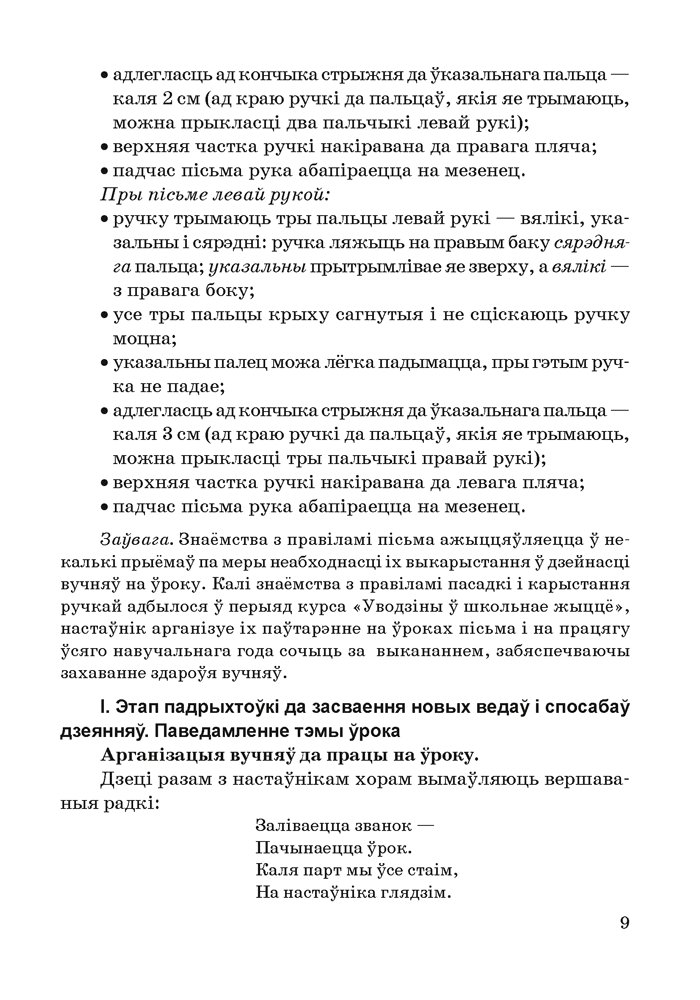 У выданні прадстаўлены метадычныя распрацоўкі па рабоце настаўніка ў падрыхтоўчы, асноўны і заключны перыяды навучання грамаце з выкарыстаннем вучэбных дапаможнікаў «Пропісь 1», «Пропісь 2», «Пісьмо» аўтараў В. І. Свірыдзенка, В. І. Цірынавай.